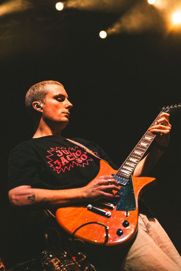 Slowing the pace down midway through the set, a handful of NewDad’s slower tracks did more than just fill the space; including a tune about being homesick and missing Ireland. Titled ‘Everything I Wanted’ this track struck a chord with the swaying room as the stage lights wrapped the Irish band in a green, white and orange glow.